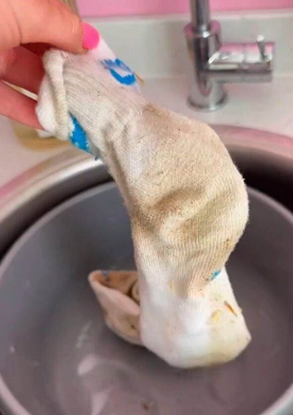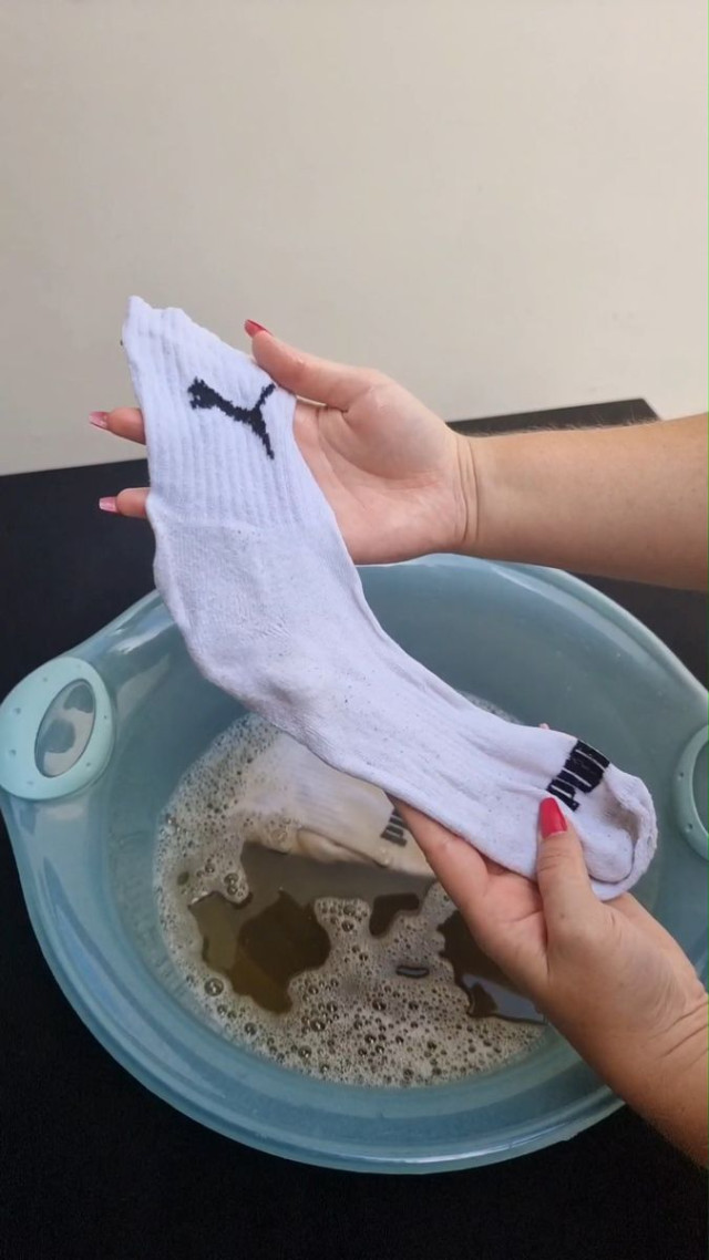 Ponožky potřete tekutým pracím prostředkem, zabalte do igelitového sáčku a nechte přípravek působit přes noc. Ráno stačí ponožky vyprat a je hotovo. Trochu jako domácí wellness – jen pro vaše ponožky.