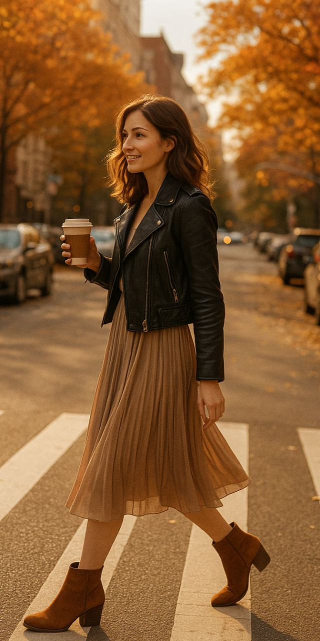 Pokud si lámete hlavu s tím, co ke kotníkovým botám obout, odpověď je jednoduchá – téměř cokoli. Elegantní midi šaty s páskem, áčková sukně s jemným svetrem, úzké džíny s oversized kabátem nebo třeba květinové šaty s dlouhým rukávem. Každá z těchto variant funguje a má svoje kouzlo. Hrajte si s délkami, vrstvením a texturami – právě v podzimu máme prostor experimentovat.